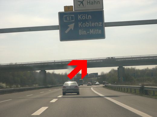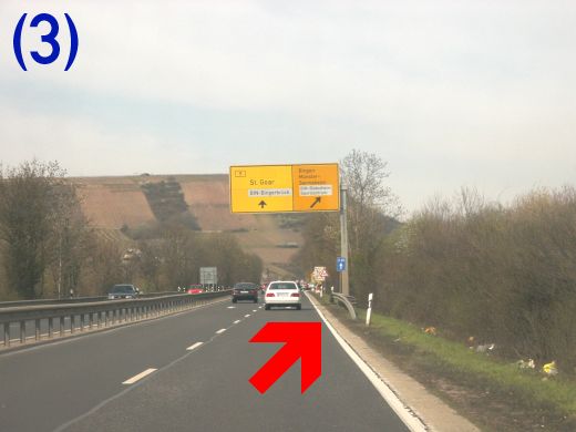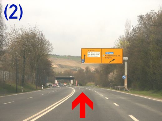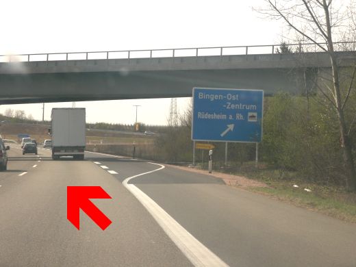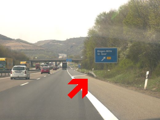 Ok, now you are on the A61, which is pretty fine. Whereever you come from...You'll arrive at Point 1, exit "Bingen-Mitte". Attention, if coming from west, this is a very short exit, so make sure you don't miss it or drive too fast.